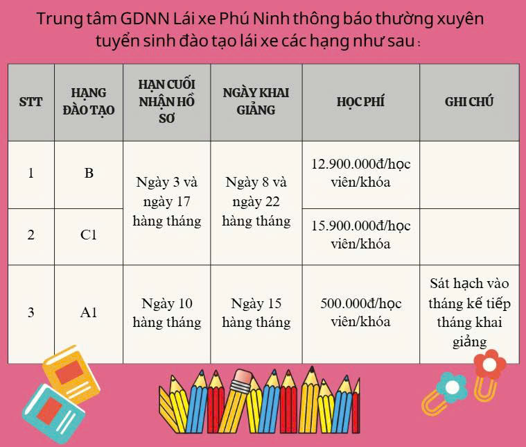 THÔNG BÁO TUYỂN SINH ĐÀO TẠO LÁI XE CÁC HẠNG A1 – B – C1